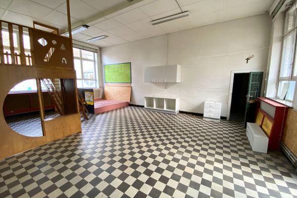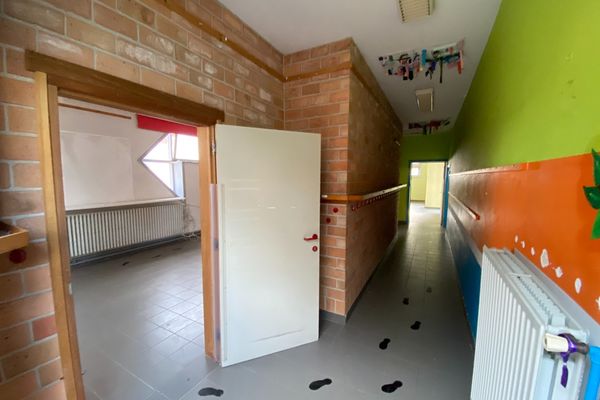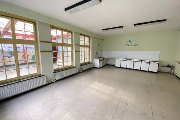 Gelijkvloers: voormalige basis- en kleuterschool met diverse klaslokalen, gangen, sanitaire voorzieningen, leraarslokaal, sportzaal en kinderopvang