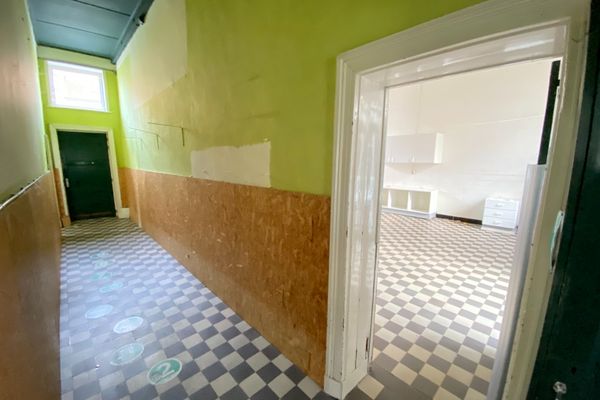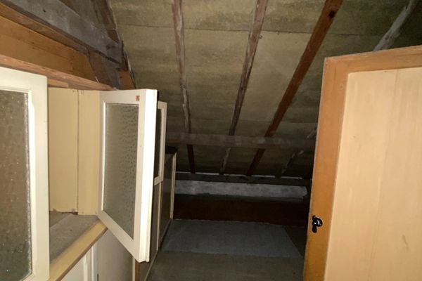 Dakverdieping: voormalige woonst met vier slaapkamers, trap- en nachthal, voormalige keuken, badkamer en overloop.